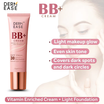Experience flawless beauty and skincare with Dermease BB+ Cream. This multifunctional marvel hydrates and nourishes your skin while evening out your complexion for a natural, radiant look. With broad-spectrum SPF protection and antioxidant benefits, it shields against UV damage and environmental stressors. Its lightweight formula blends effortlessly, providing comfortable wear all day long. Perfect for all skin types, Dermease BB+ Cream simplifies your routine, offering a seamless blend of skincare and makeup for healthy, glowing skin every day.