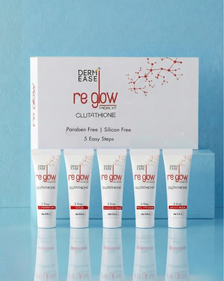 Derm Ease Reglow Facial Kit is a complete facial care system designed to deeply cleanse, nourish, and restore your skin’s natural glow. Enriched with skin-friendly ingredients, this advanced facial kit helps improve skin texture, enhance radiance, and promote an even, healthy-looking complexion. The carefully formulated steps work together to remove impurities, exfoliate dead skin cells, boost hydration, and revitalize dull, tired skin. Regular use helps reduce the appearance of tan, uneven tone, and dryness, leaving the skin soft, smooth, and visibly refreshed.Suitable for all skin types, Derm Ease ReGlow Facial Kit is ideal for salon treatments as well as home facial rituals, delivering instant brightness with long-lasting nourishment.