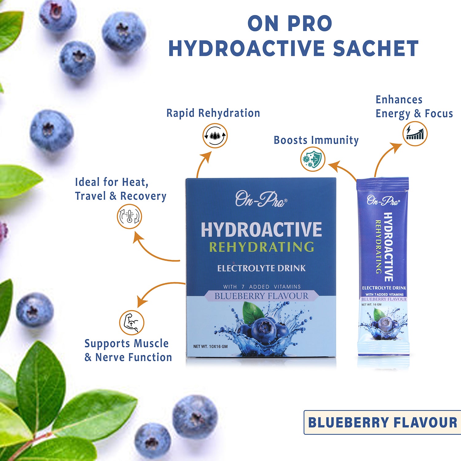 Meet ON-PRO HydroActive Rehydrating Electrolyte Drink in the bold and refreshing Blueberry flavour – a powerful hydration formula crafted for high-performance lifestyles.